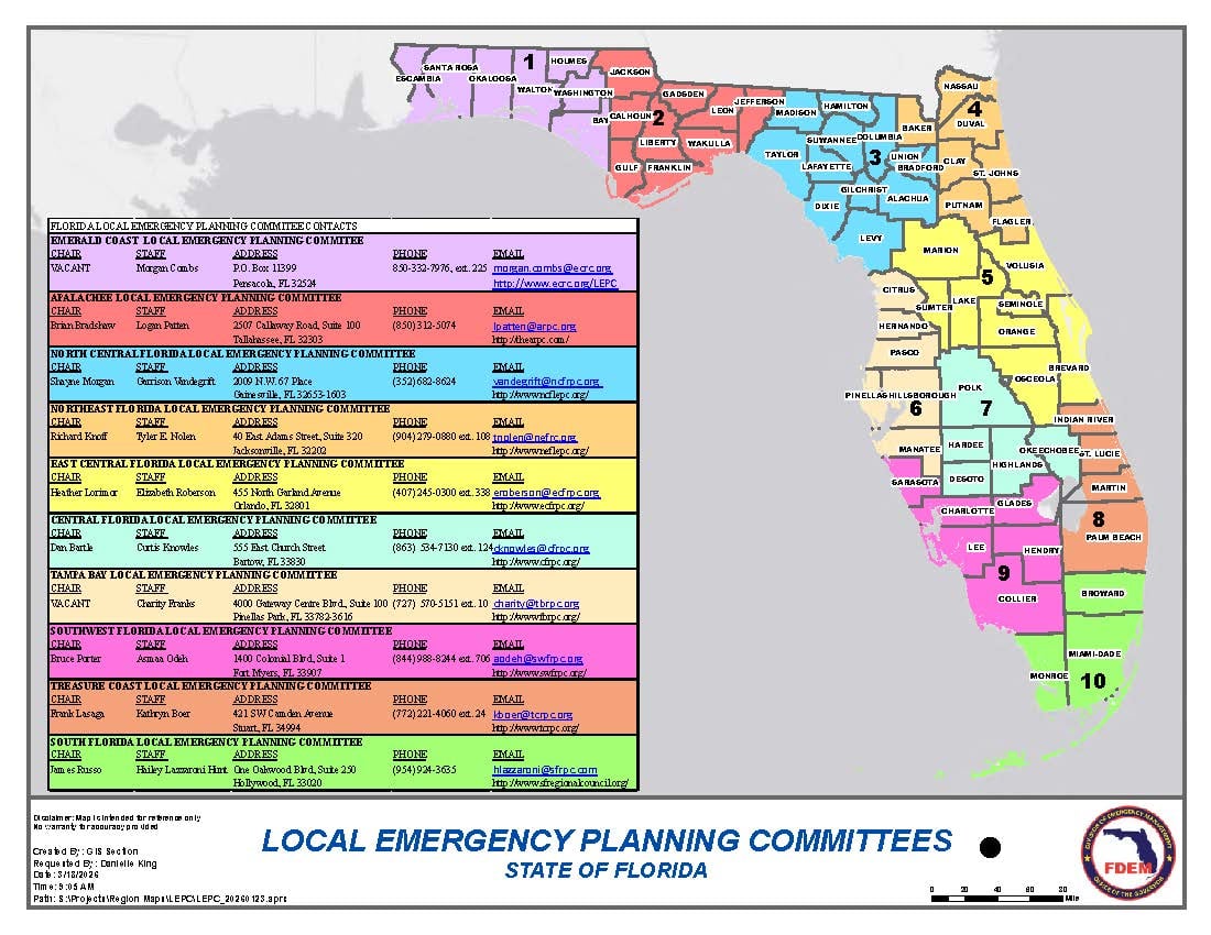 Pursuant to the Emergency Planning and Community Right-To-Know Act, a Local Emergency Planning Committee (LEPC) is responsible for preparing a regional hazardous materials emergency response plan, serves as a repository for regional hazardous materials information, and performs outreach functions to increase hazardous materials awareness. LEPC membership consists of local professionals representing occupational categories such as firefighting, law enforcement, emergency management, health, and/or transportation.