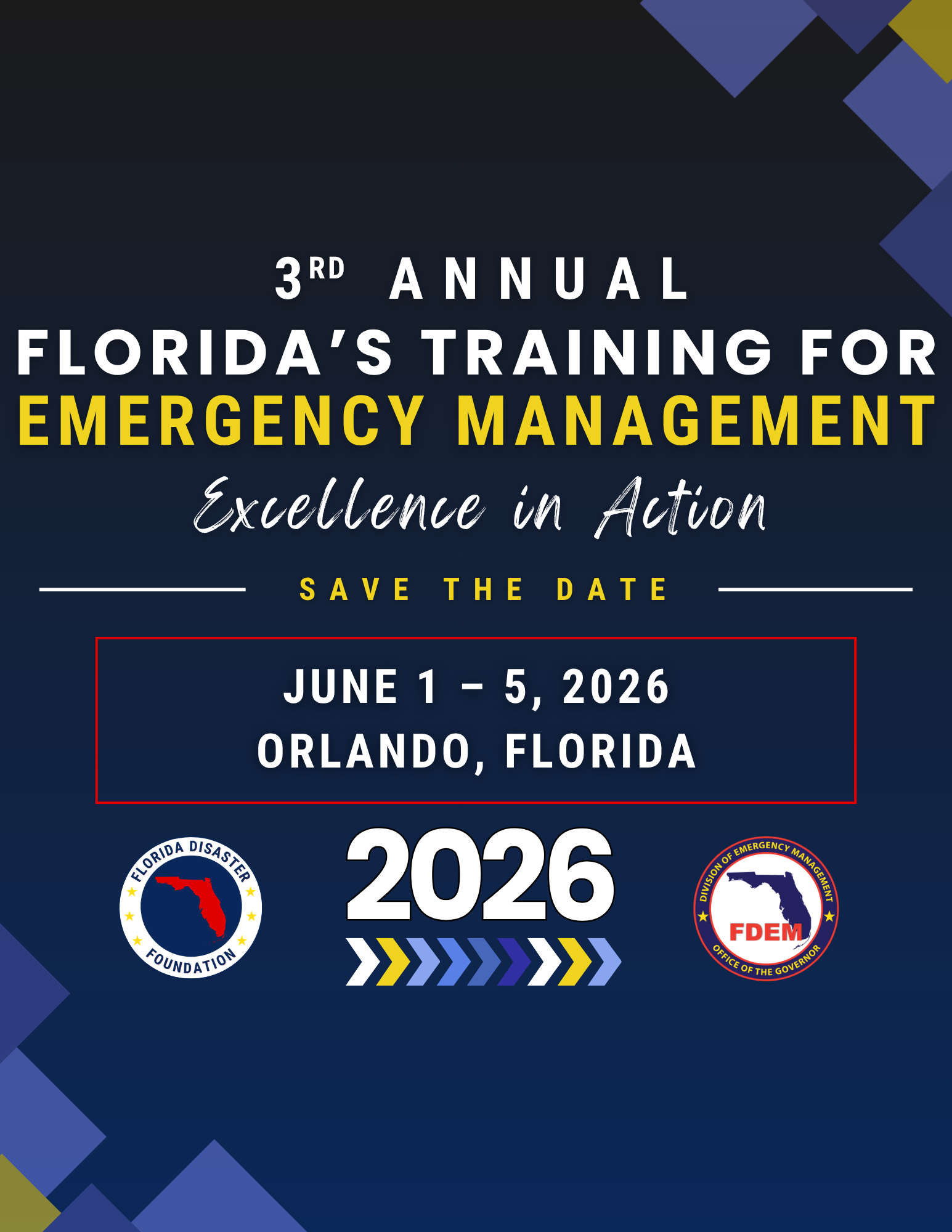 The Florida Division of Emergency Management (FDEM) is excited to announce the Second Annual Awards Gala on Thursday, June 4, 2026. As FDEM continues to lead the profession, we will celebrate the accomplishments of the individuals and groups that contribute to Florida's legacy and impact this evening.