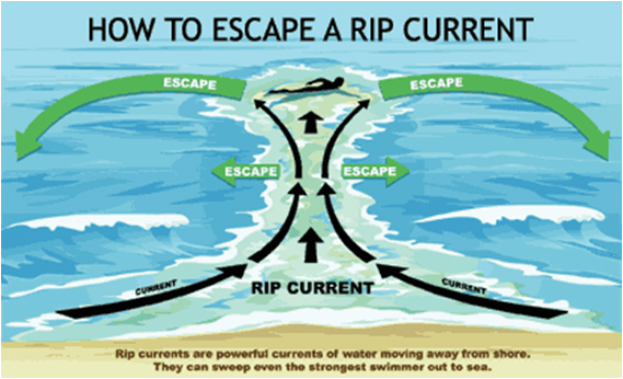 - Think of a rip current like a treadmill that cannot be turned off, which you need to step to the side of.