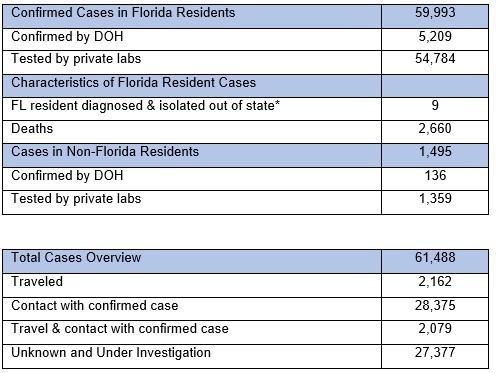There are a total of 61,488 Florida cases*** with 2,660 deaths related to COVID-19.
